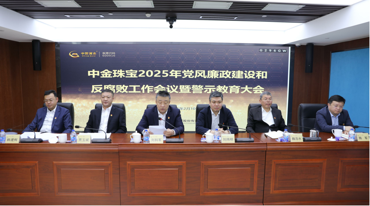 2月10日,中金珠寶黨委在京召開2025年黨風廉政建設和反腐敗工作會議暨警示教育大會,以習近平新時代中國特色社會主義思想為指導,全面貫徹黨的二十大和二十屆二中、三中全會精神,深入落實二十屆中央紀委四次全會特別是習近平總書記重要講話精神、國務院國資委和集團公司2025年黨風廉政建設和反腐敗工作會議暨警示教育大會精神,全面總結2024年中金珠寶黨風廉政建設和反腐敗工作,開展警示教育,部署2025年工作任務,推動中金珠寶全面從嚴治黨不斷向縱深發展。
